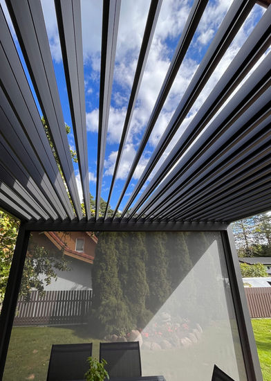 A bioclimatic pergola made of bio composite (WPC) is a harmonious and ecological solution for your outdoor space. This pergola combines modern bio composite technology with bioclimatic design principles, providing comfort and multiple functions.